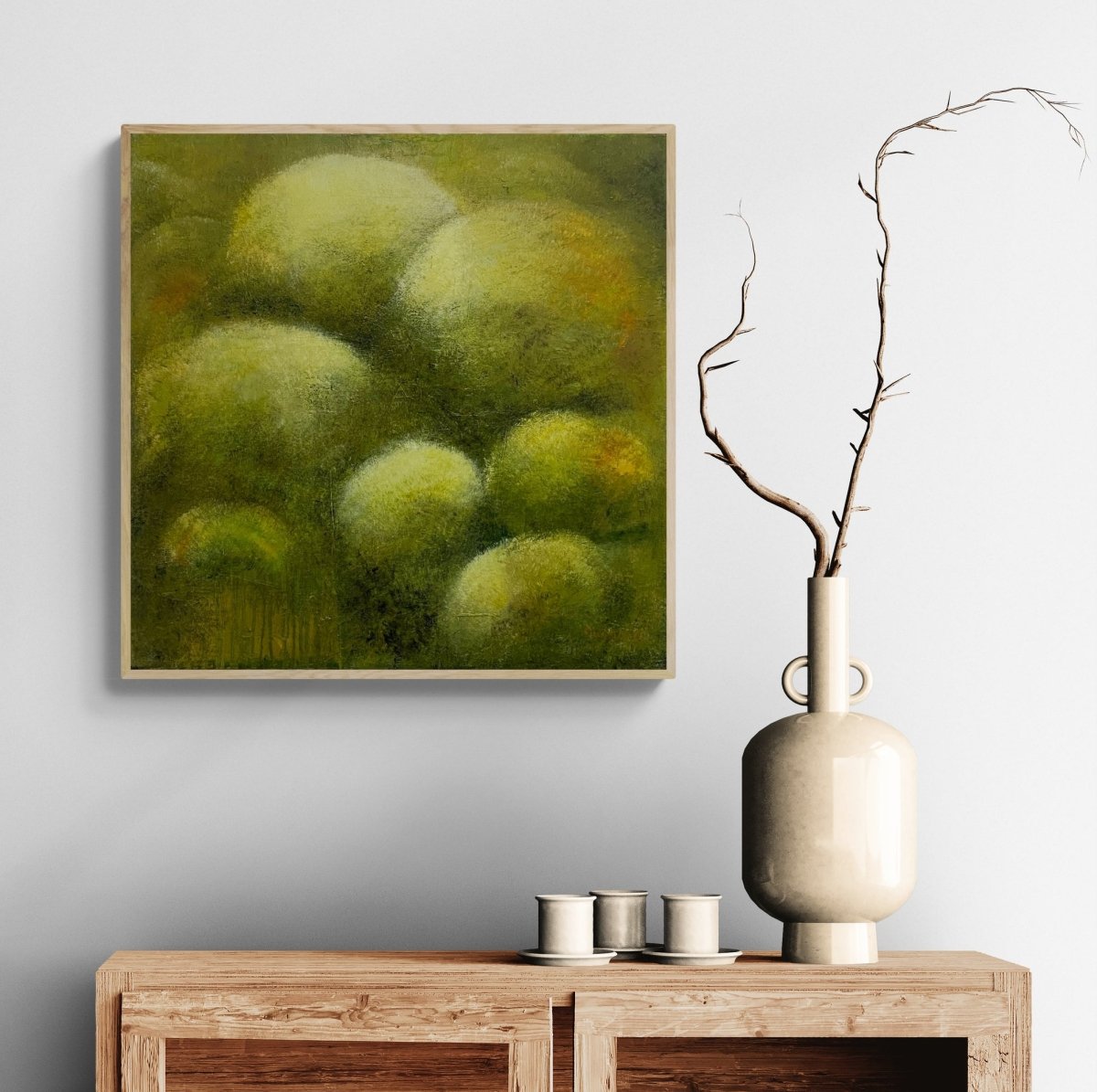 52x52 í ljósum viðarramma.