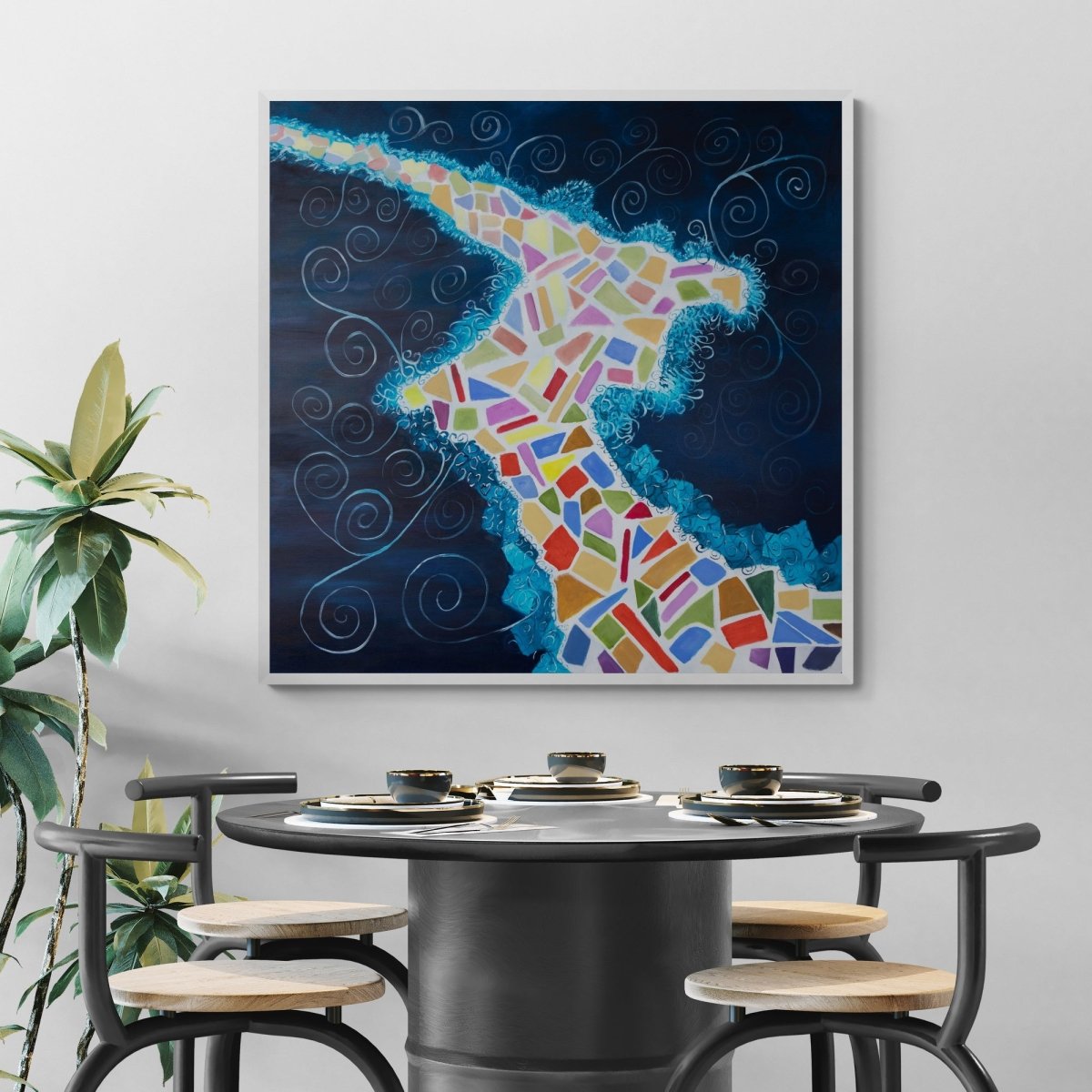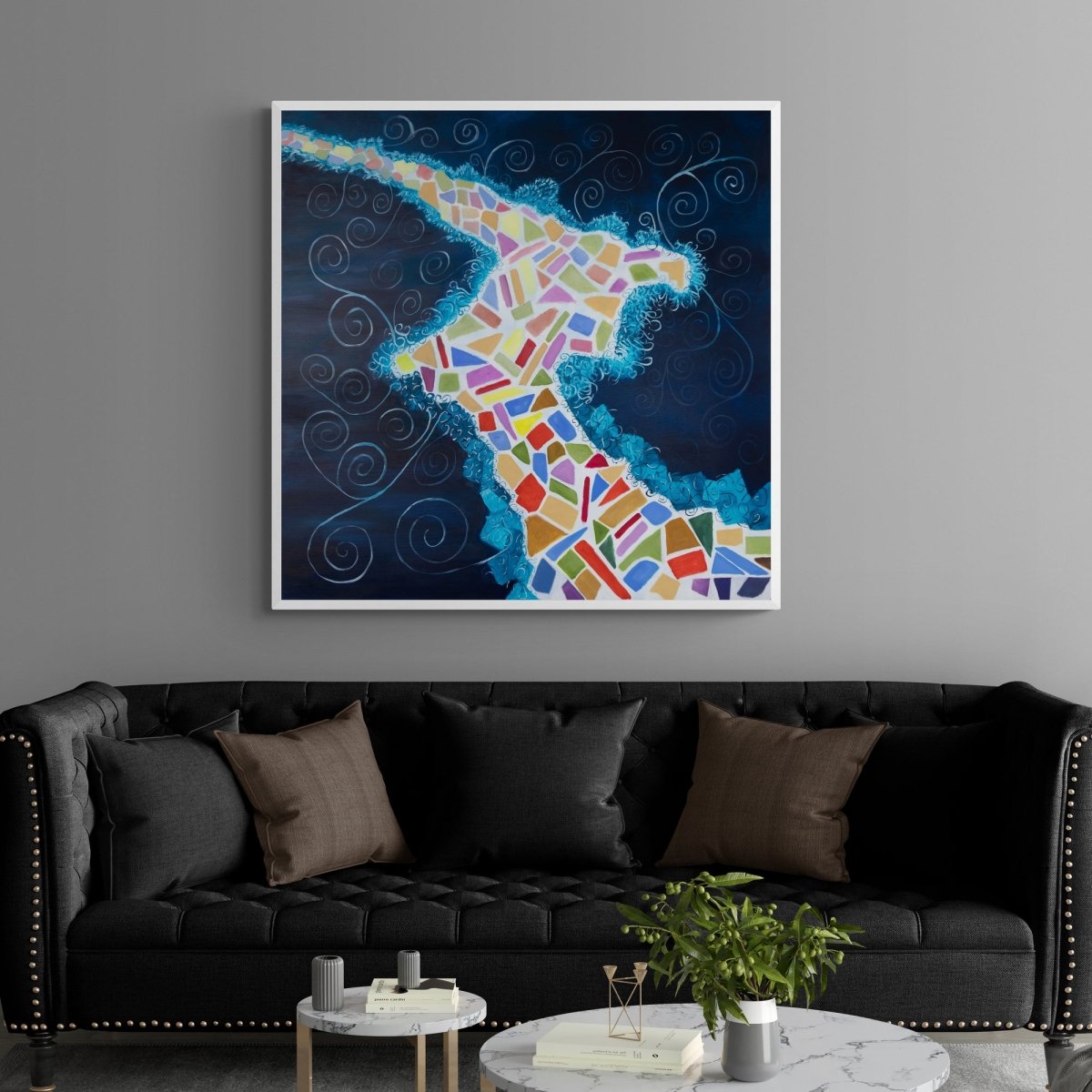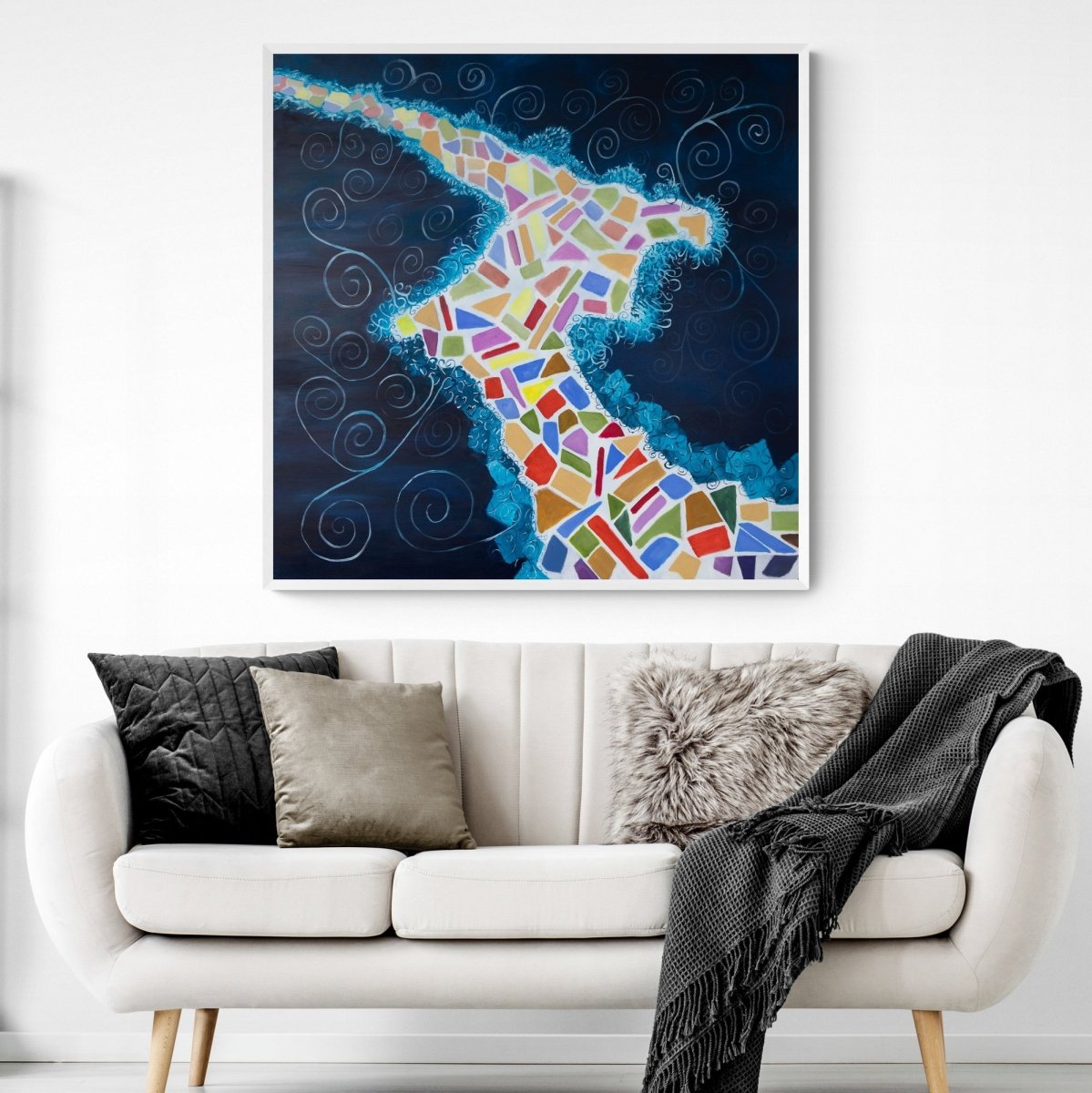 104x104 cm í hvítum flotramma.