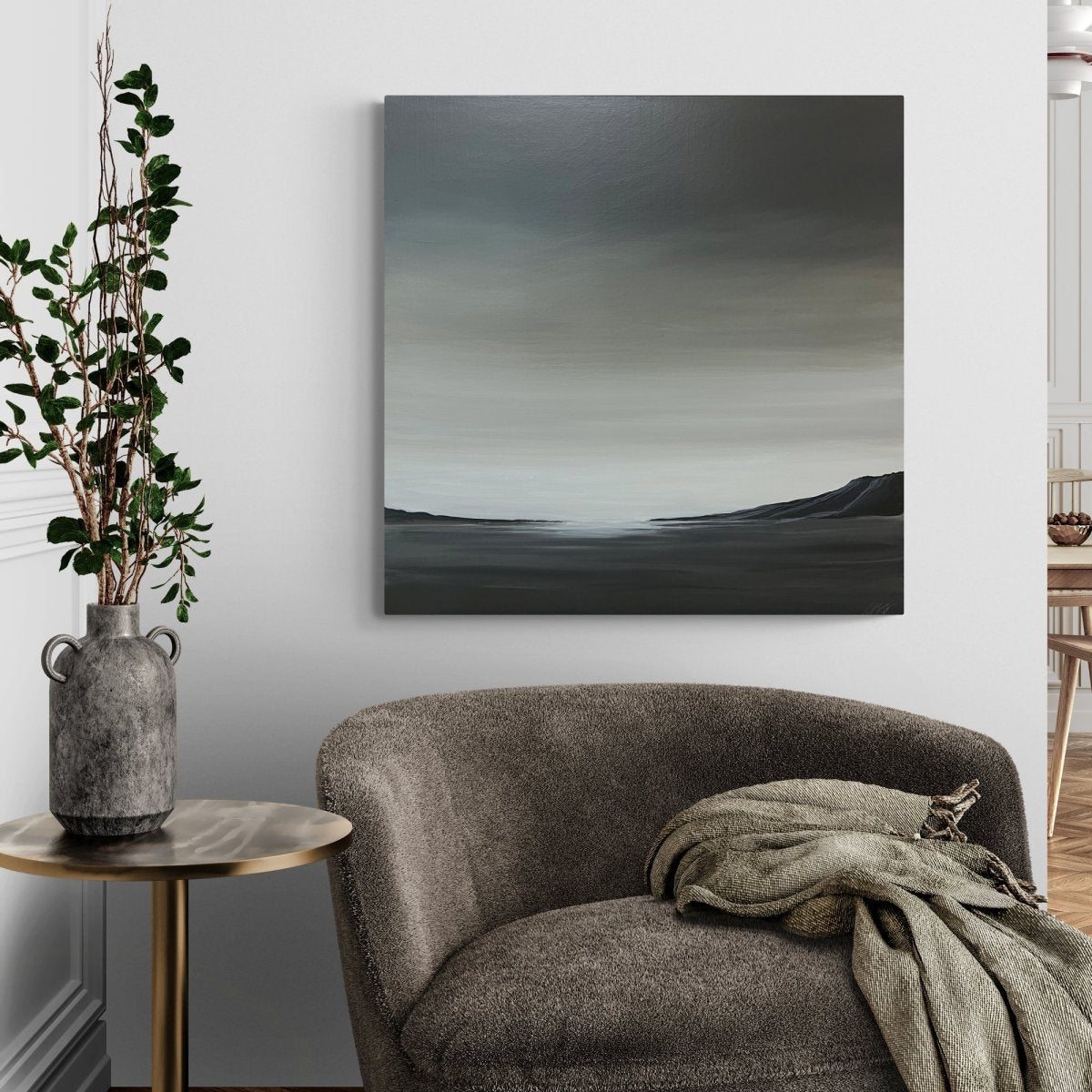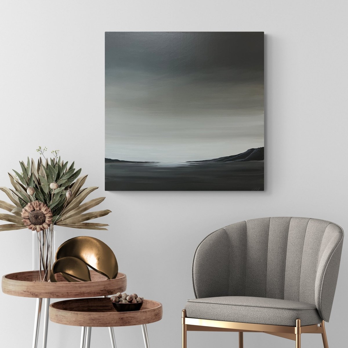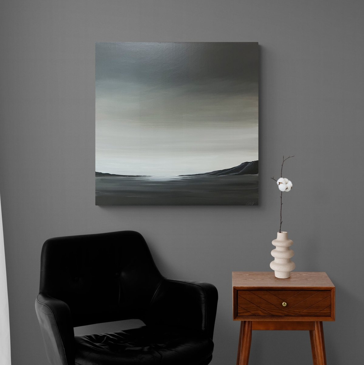 "HÆGVIÐRI er eins og rólegt faðmlag náttúrunnar sem umvefur jörðina á friðsælan hátt. Kyrrðin yfir landslaginu kallar á að við upplifum við tærleika og frið sem fylla hjartað með þakklæti fyrir lífsins stillu og jafnvægi og við gleðjumst yfir einfaldleika lífsins. Við njótum veru okkar í veröldinni með hugarró, þar sem jafnvægið milli himins og jarðar opnar hugann fyrir þeirri fegurð sem má finna í hverri andrá."
