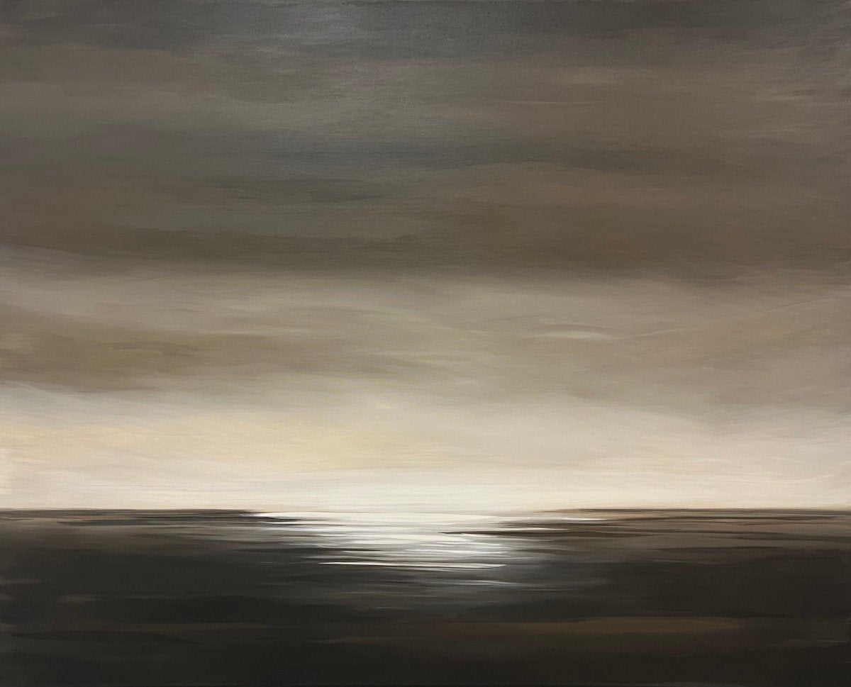 "LJÓSGLÓÐ á hafi, lýsir upp leiðina okkar heim og flytur von til þeirra sem eru á ferð. Þegar sólin speglast á haffletinum, lýsir hann gylltu ljósi og skapar glóð á yfirborði vatnsins er eins og hún vilji benda á það bjarta í náttúrunni og lífinu. Hafið, þetta óendanlega djúpbláa undur, verður að skínandi áminningu um að í öllum aðstæðum má finna það bjarta þar sem LJÓSGLÓÐ veitir bæði von, frið og mildi."