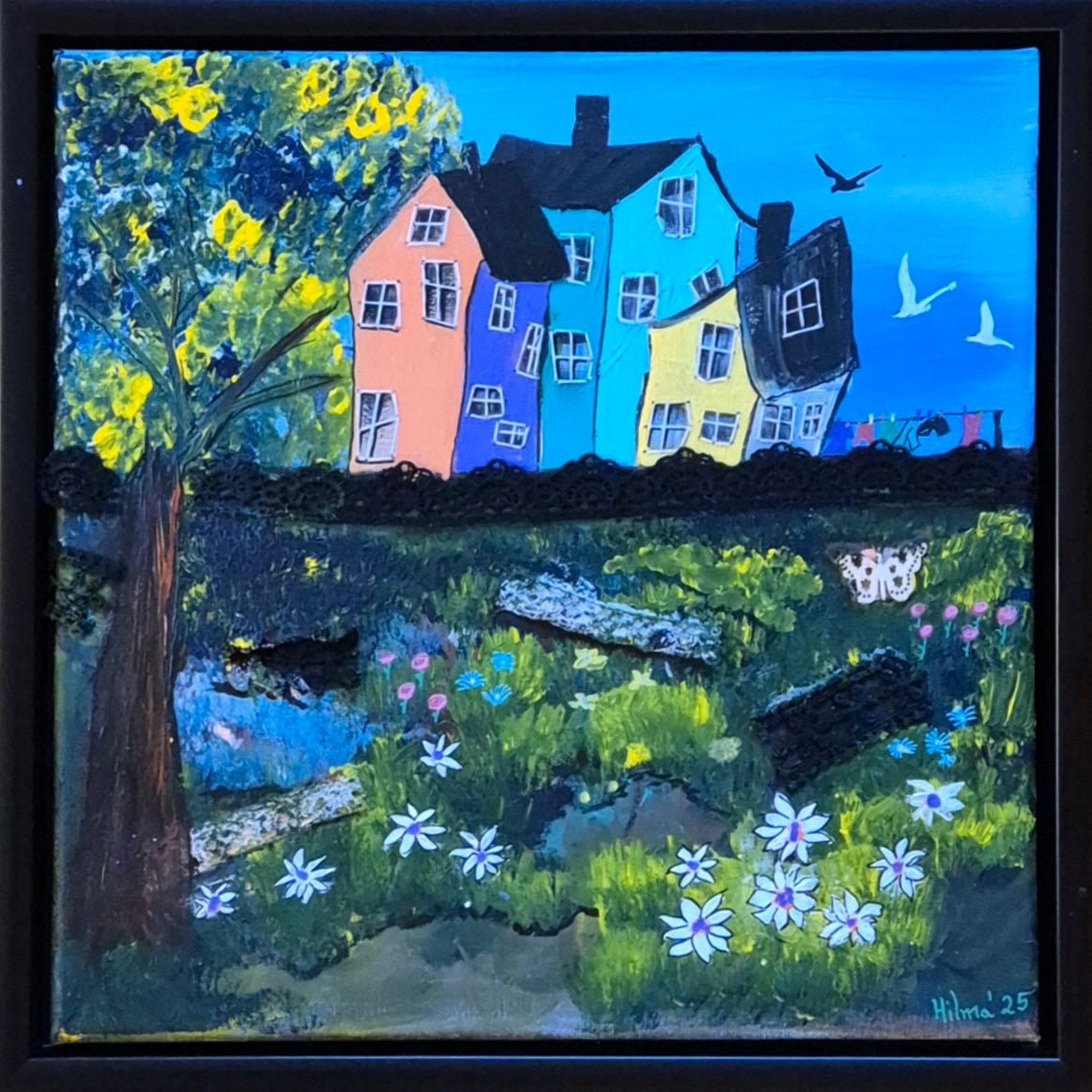 Tækni: Akrýl og útsaumur á striga.