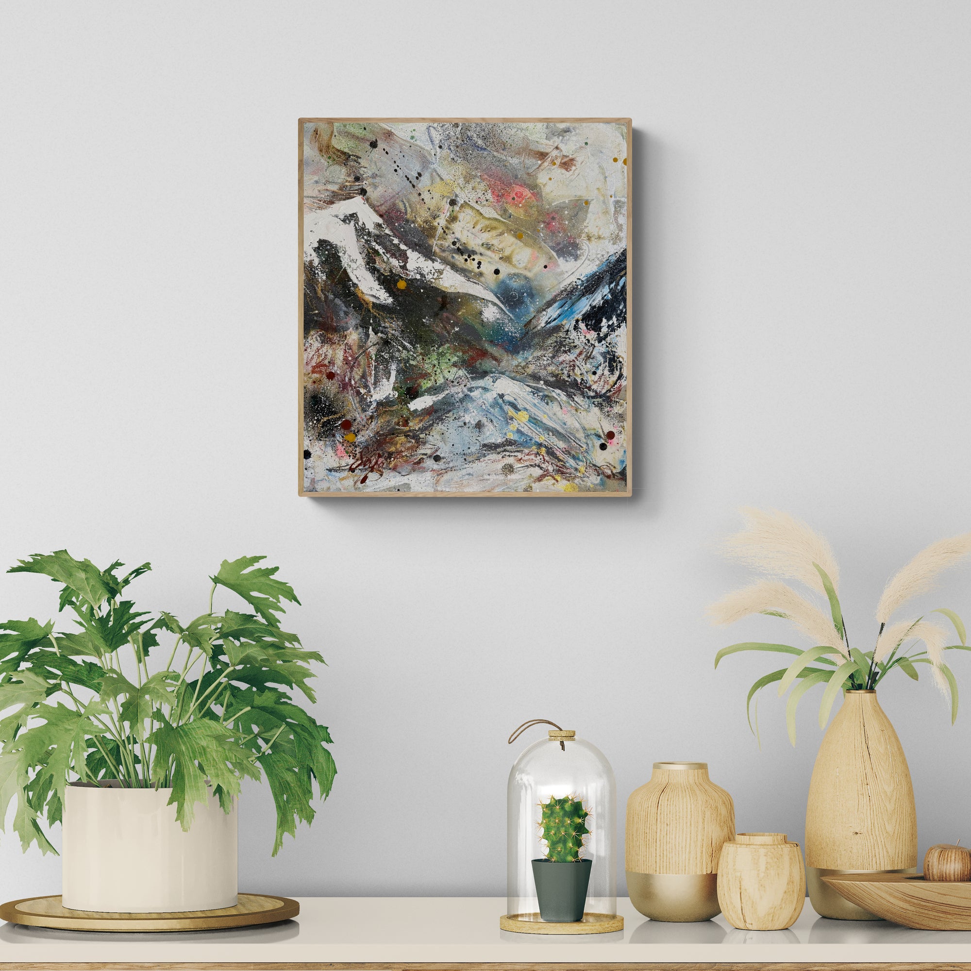 41,7x36,7 cm í eikar flotramma.