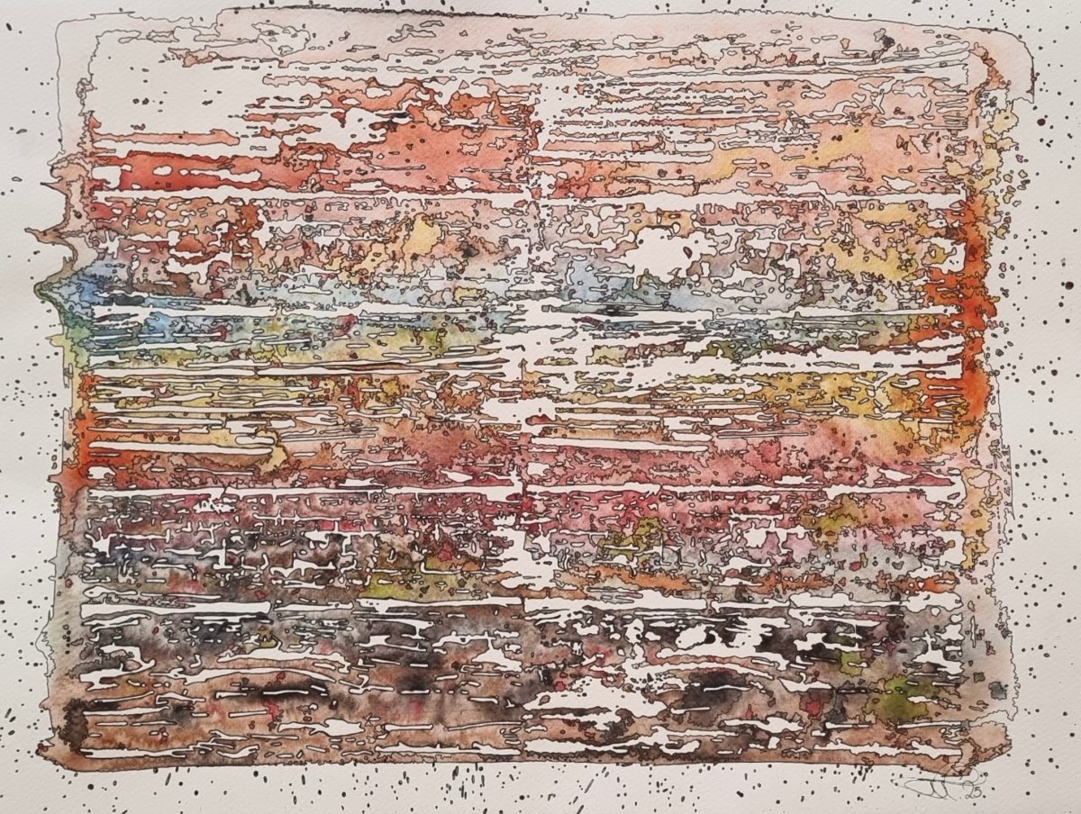 Tækni: Vatnslitir og túss á pappír.