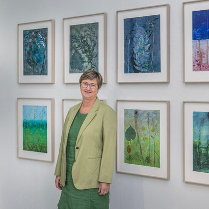 Jóhanna Sveinsdóttir er fædd og uppalin í Borgarfirði en flutti til Reykjavíkur á námsárunum og býr þar nú. Hún sækir innblástur til æskuslóða í sveitinni og notar til dæmis gróður við vinnslu verka sinna.