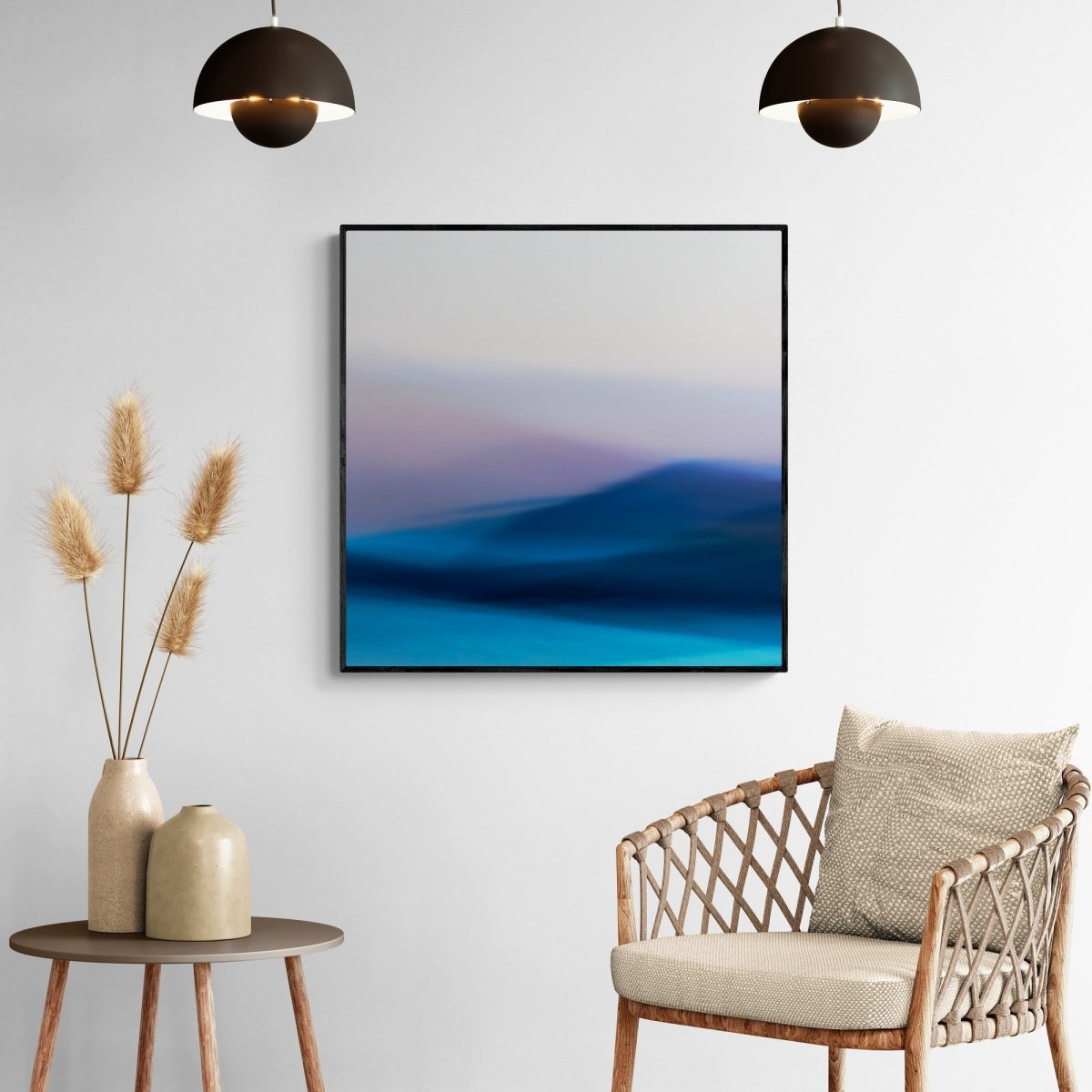 71x71 cm í svörtum ramma og spegilfríu gleri.