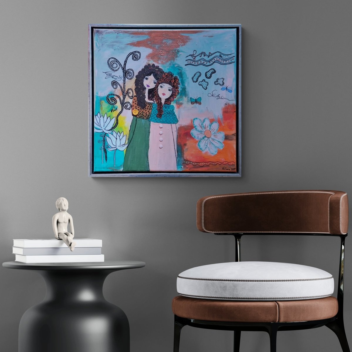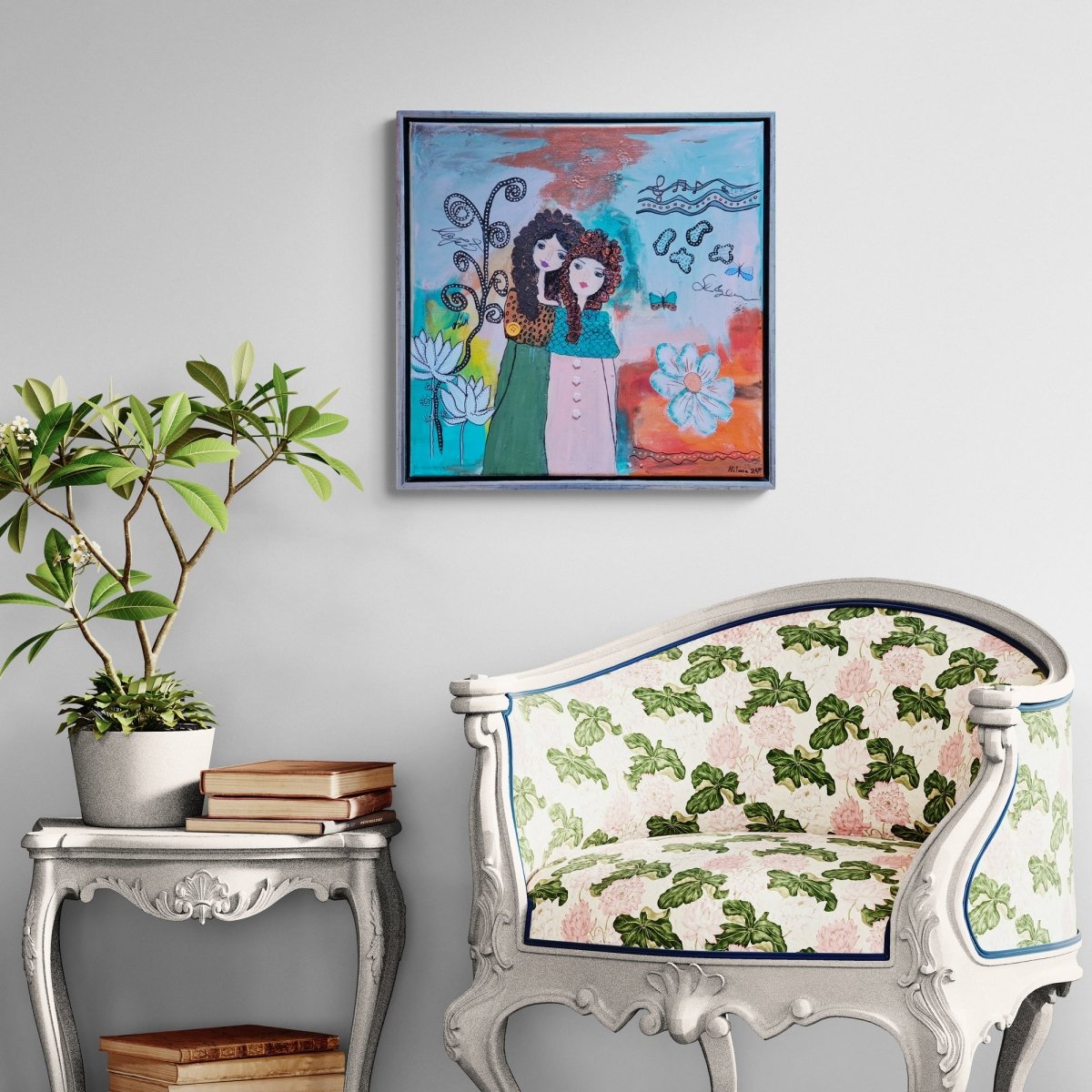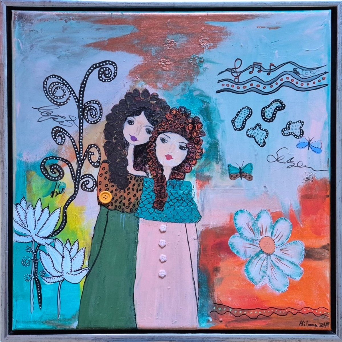 54x54 cm í silfurlituðum flotramma.