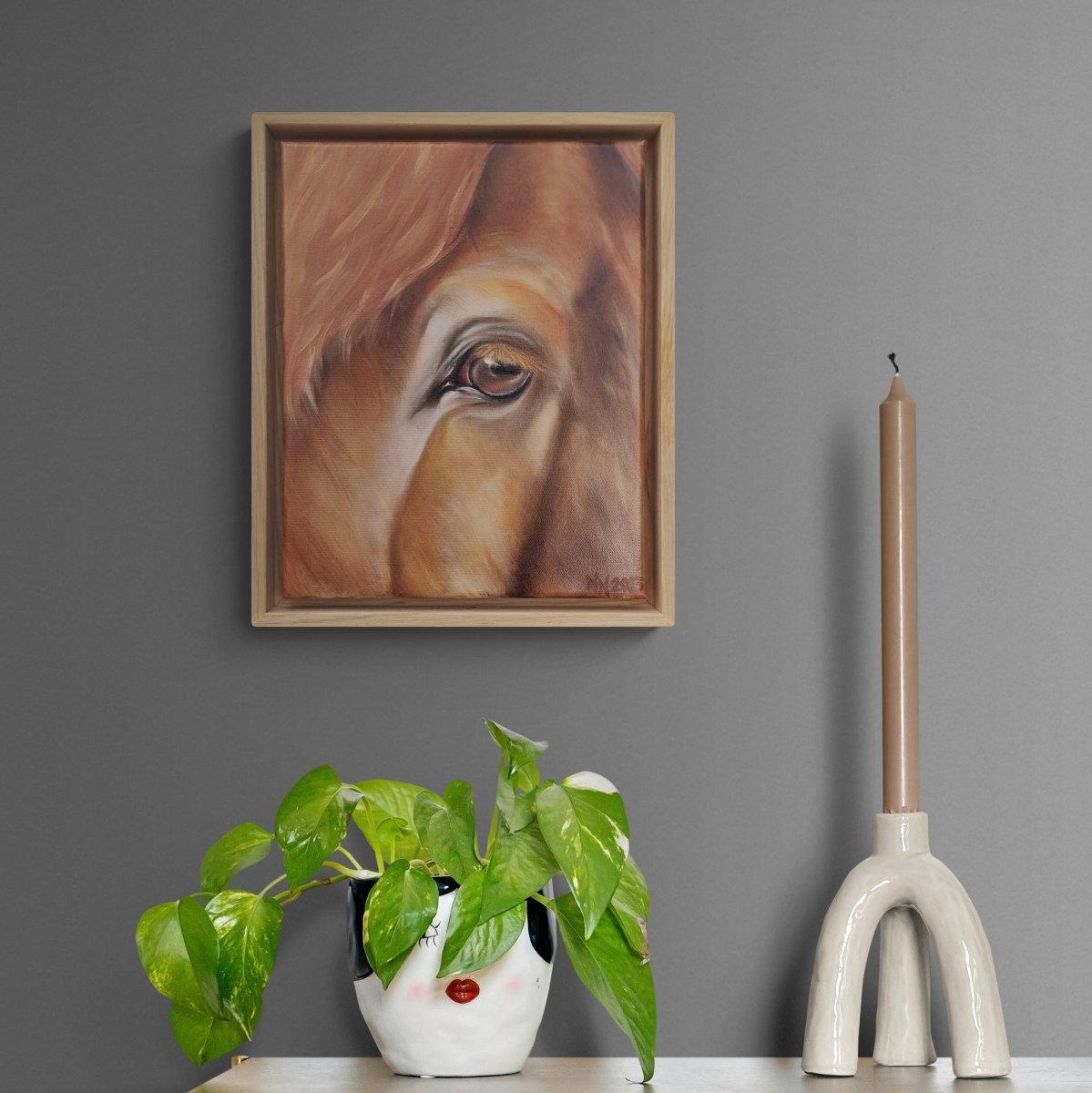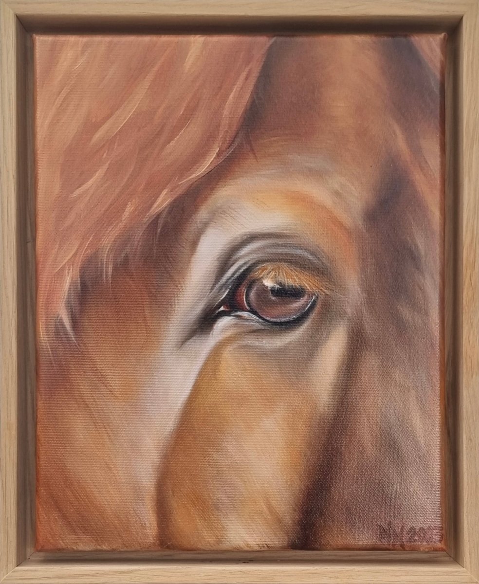 Hrönn Helgadóttir ólst upp í Þingeyjarsýslu til 12 ára aldurs og hefur alla tíð verið sveitastelpa. Nú býr hún í Mosfellsbænum með útsýni yfir sjóinn og Esjuna – stað sem veitir henni innblástur á hverjum degi. Alla ævi hefur hún tengst náttúrunni og dýrum og það hefur haft mikil áhrif á myndlist hennar. Í gegnum tíðina hefur hún aðallega verið að fást við olíumálverk en að undanförnu hafa vatnslitir og akrýllitir bæst við.
