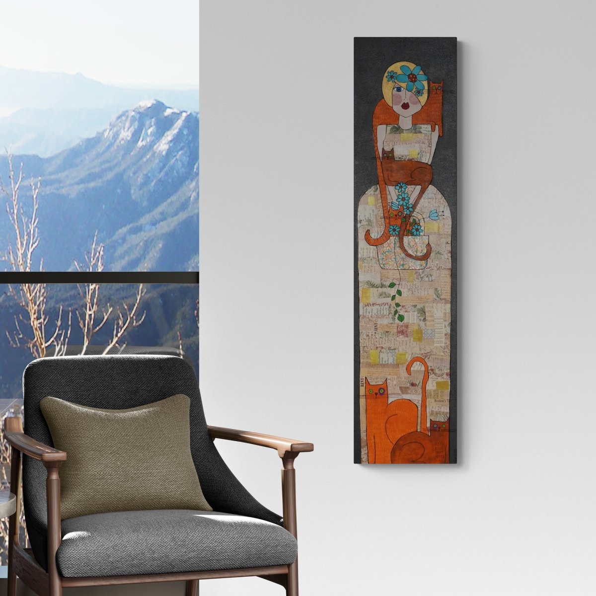 Tækni: Akrýl, blek og pappír á striga.
