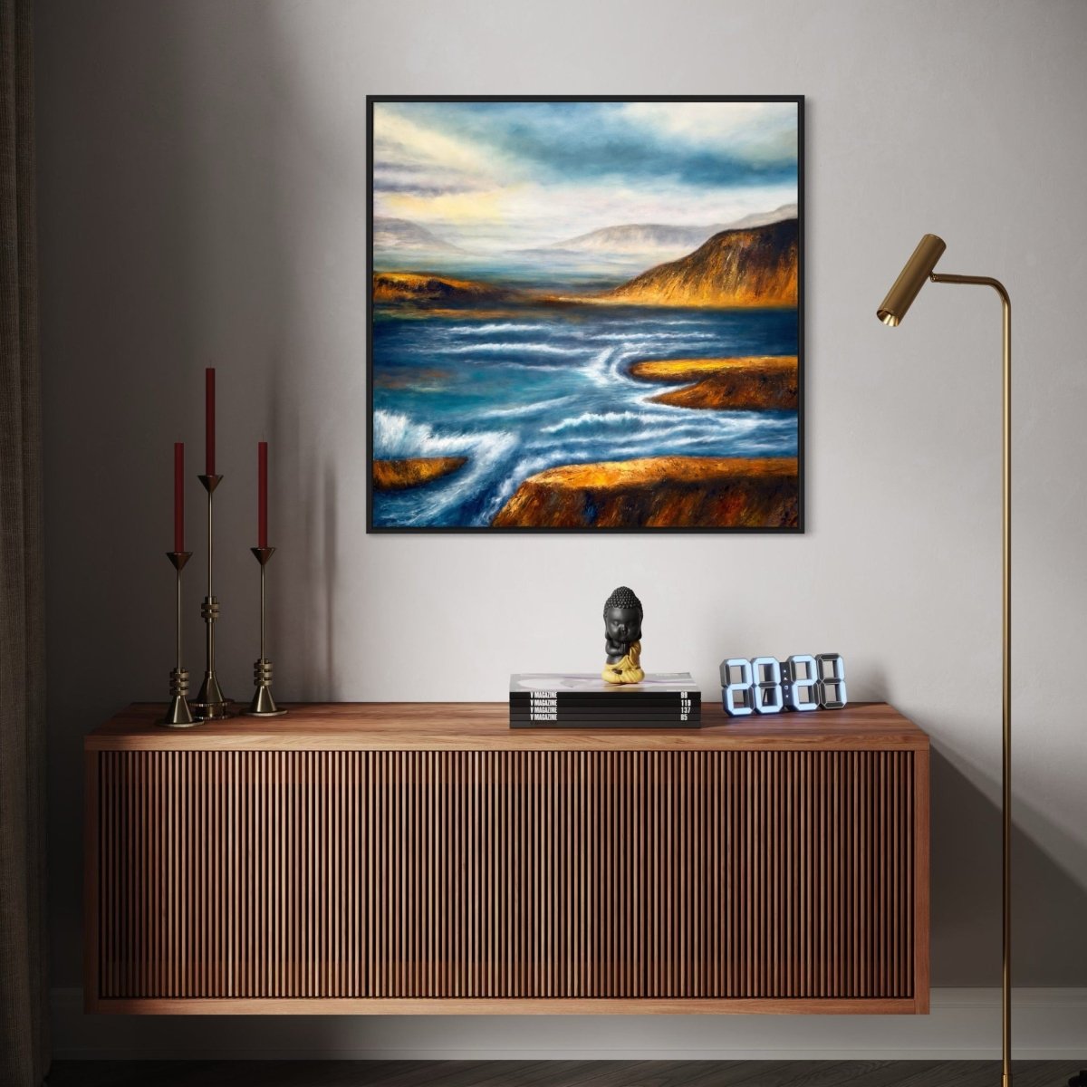 Innrömmun er innifalin. Verkið afhendist innrammað í svörtum, hvítum eða eikar ramma.