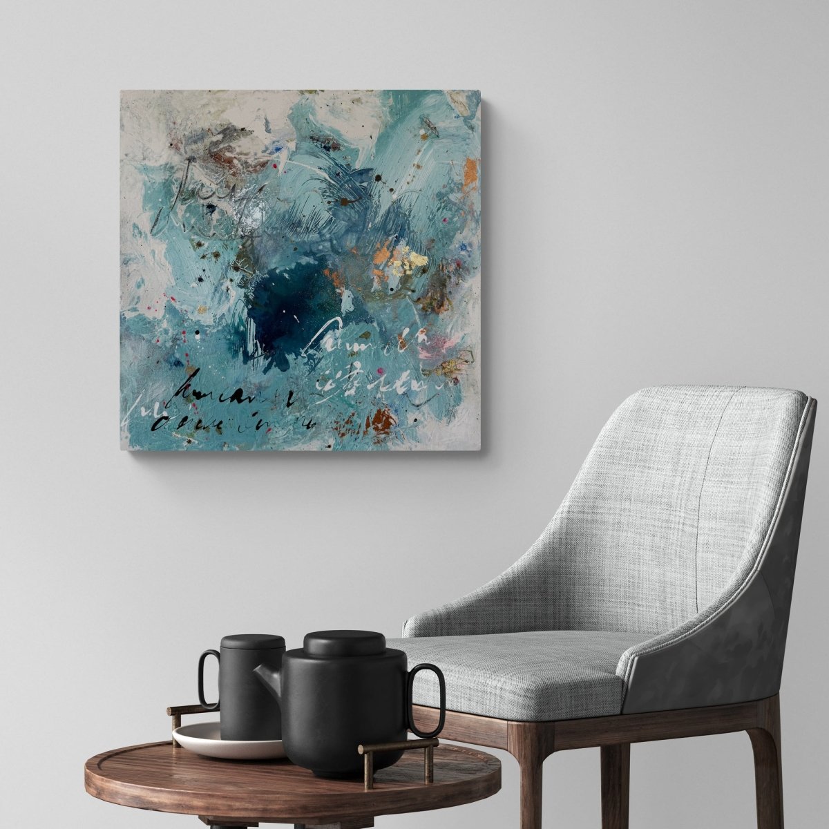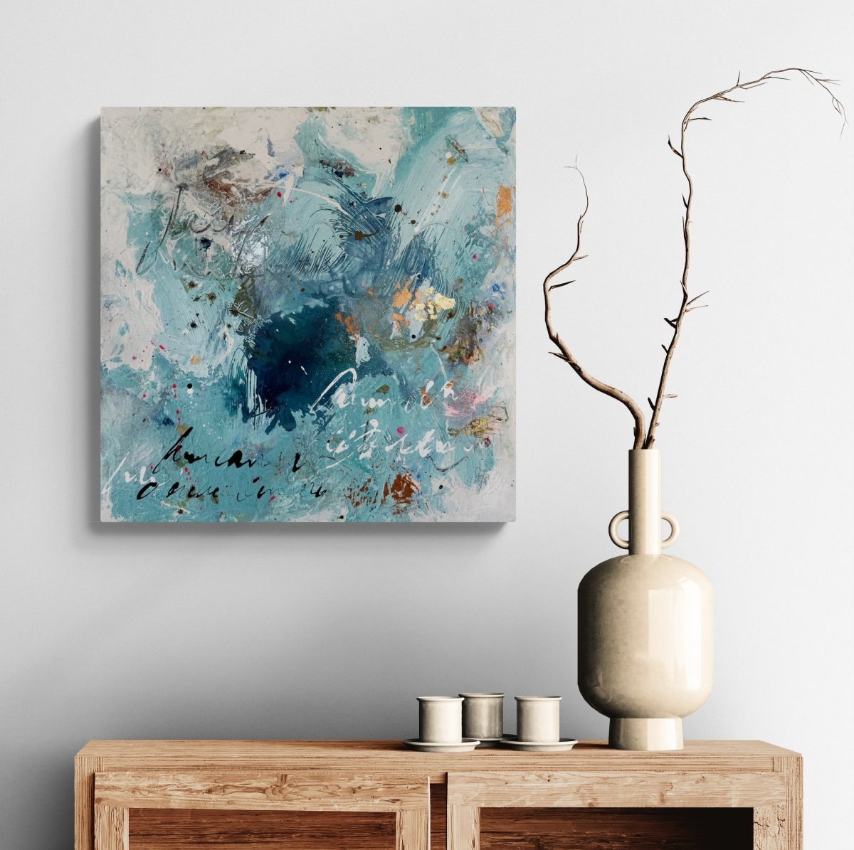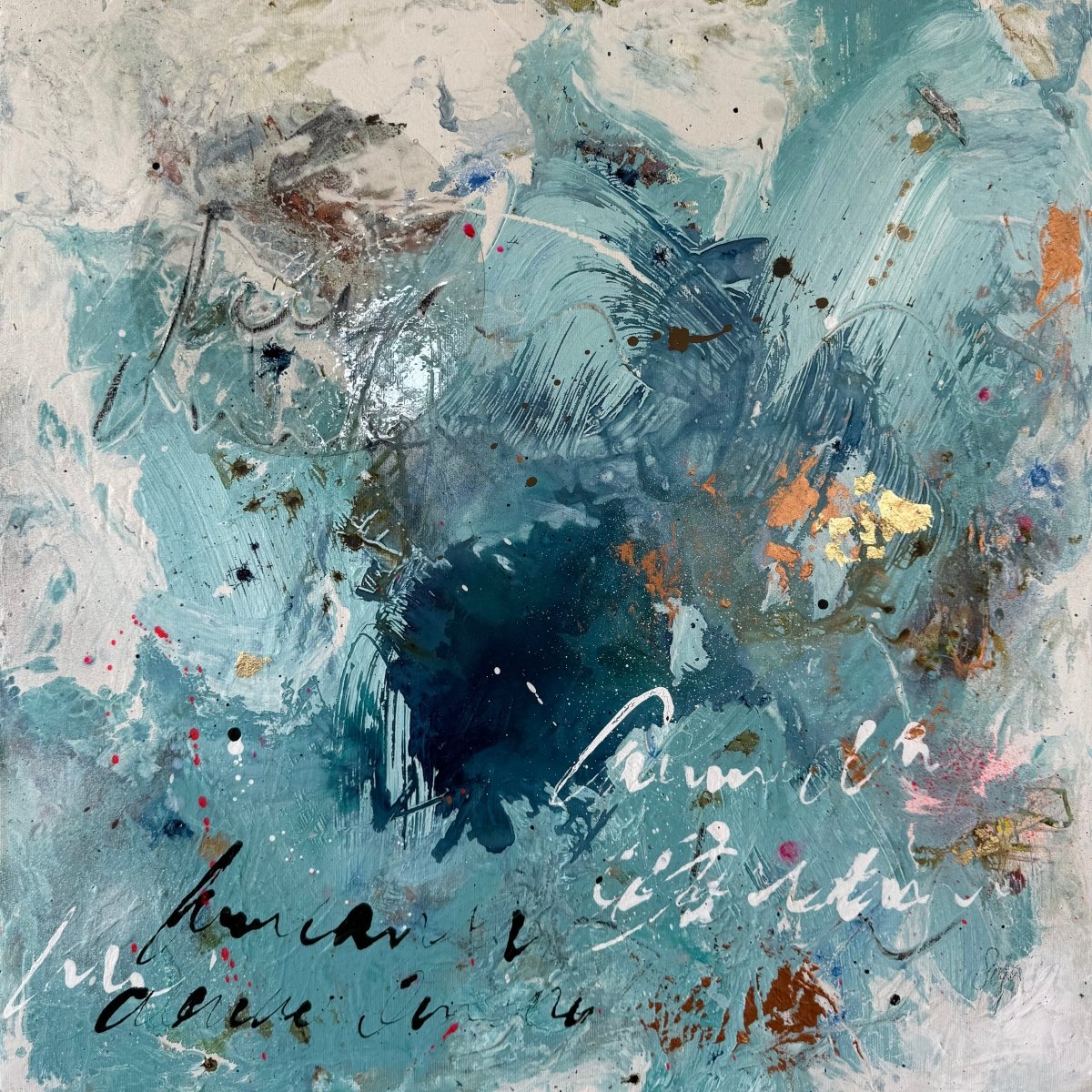 Tækni: Akrýl, lakk og blaðgull á striga.