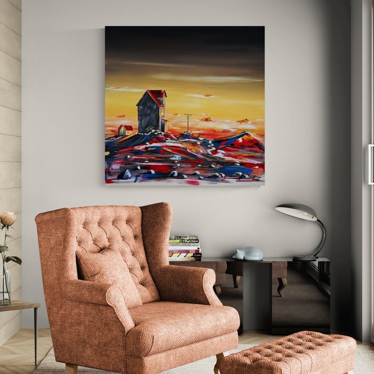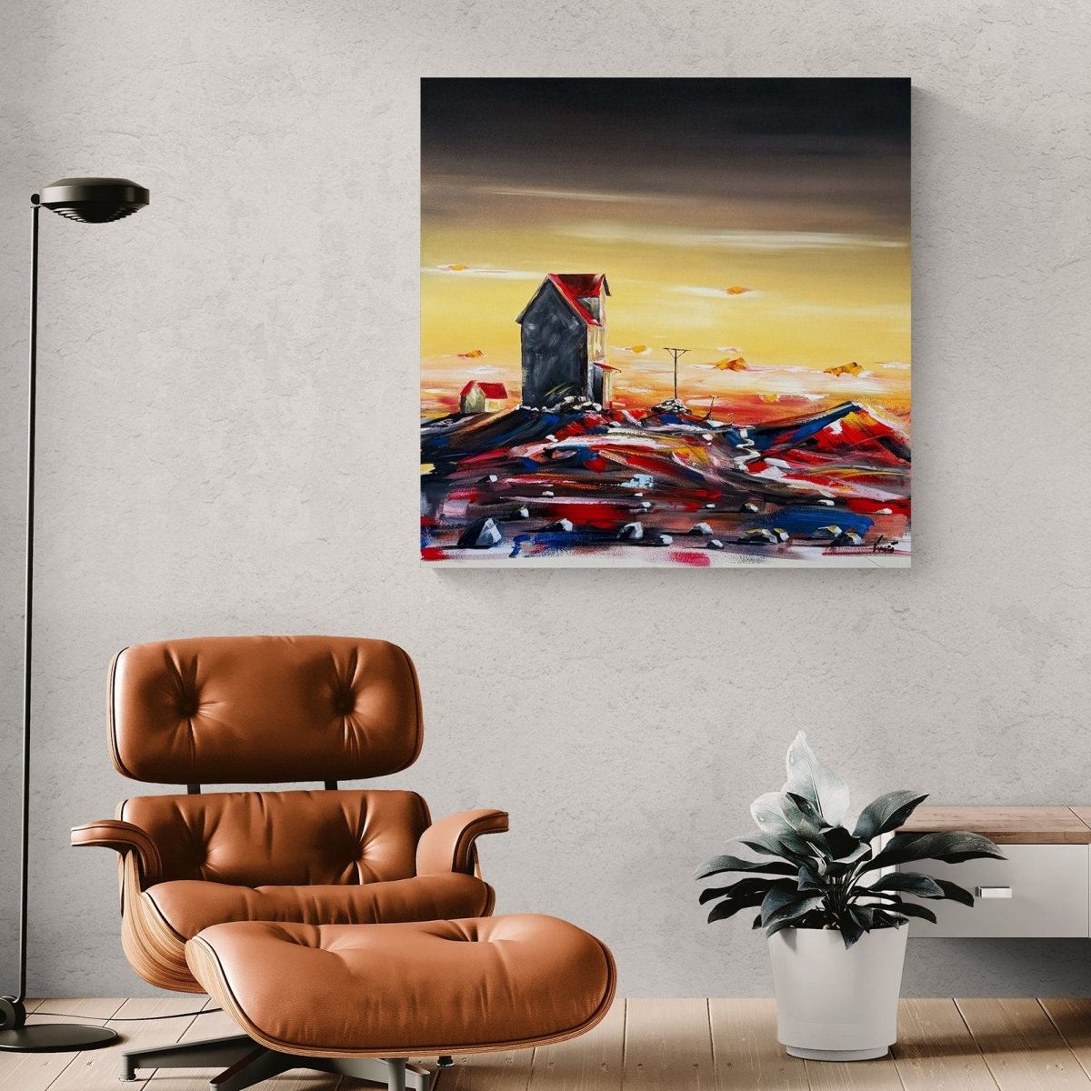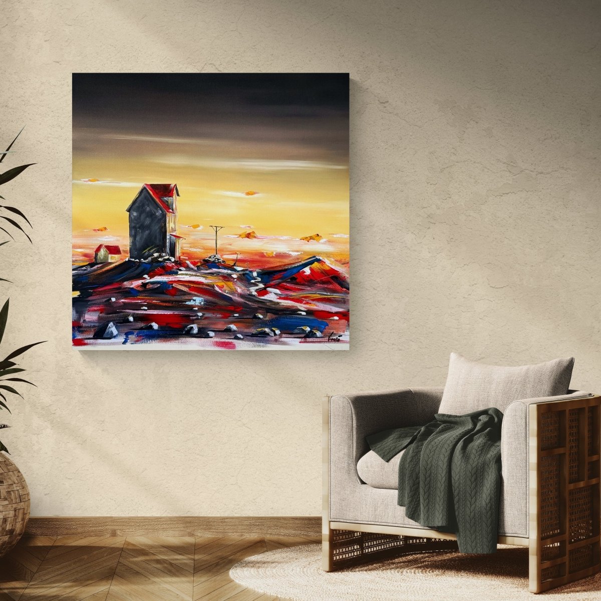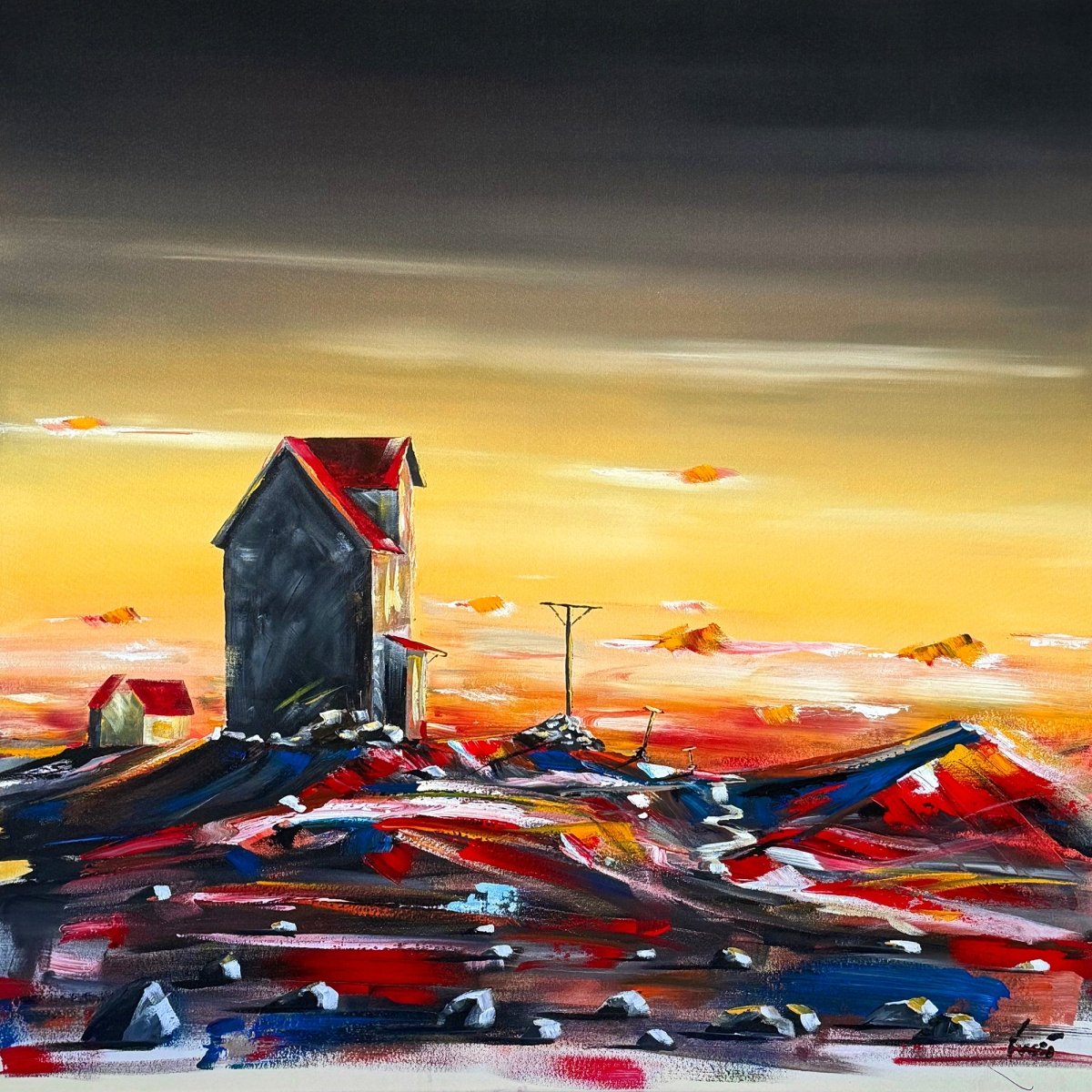 "Afhverju mála ég alltaf hús án glugga? Afhverju girðingastaura án gaddavírs? Húsið er persóna - ég, þú eða einhver annar. Það þurfa ekki allir að sjá í gegnum gluggann, eða í þitt prívat líf. Girðingarstaurarnir eru utan um sálar-garðinn þinn. Það eru allir velkomnir inn fyrir girðinguna en ÞÚ ákveður hverjum þú býður inn í húsið þitt. Það er ástæðan fyrir gluggalausu húsunum og að innan eru þeir sem þar þurfa að vera og fá að sjá."