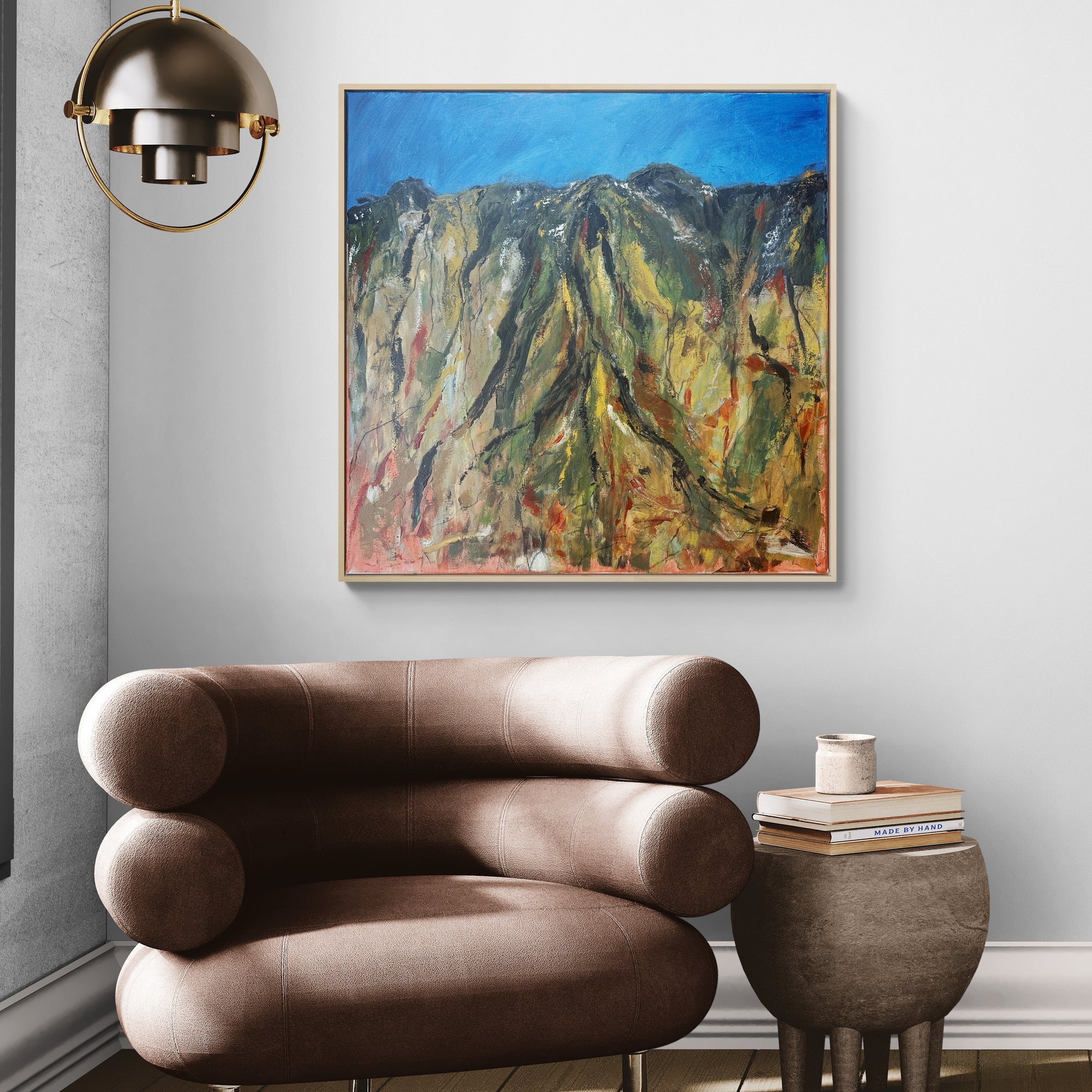 84x84 cm í viðar flotramma.