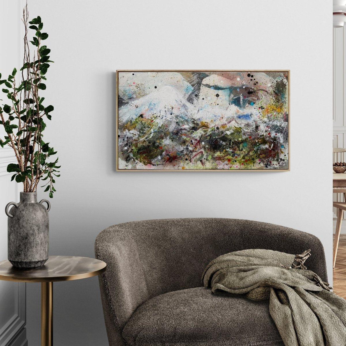 Tækni: Akrýl, olía og krít á striga (hör).